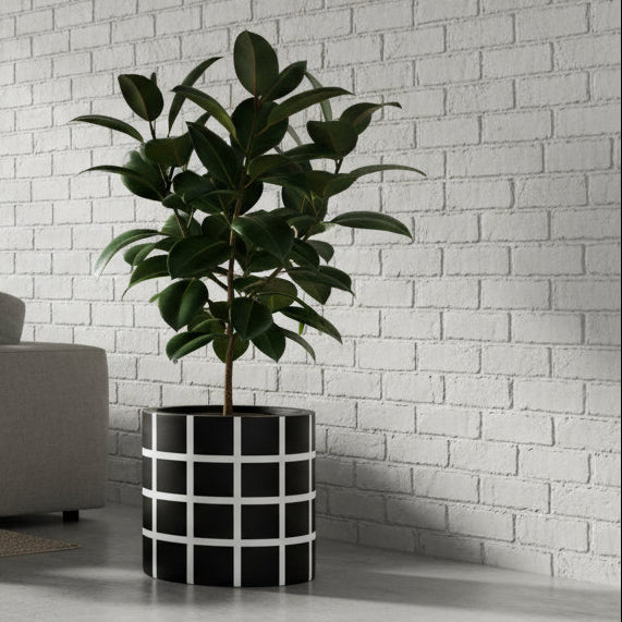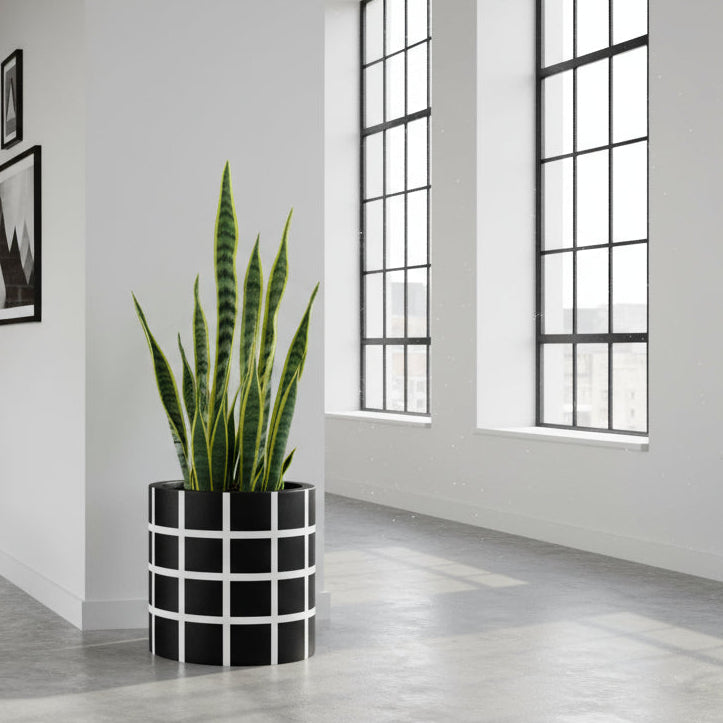 Grid Cylinder Pot Black | Planter